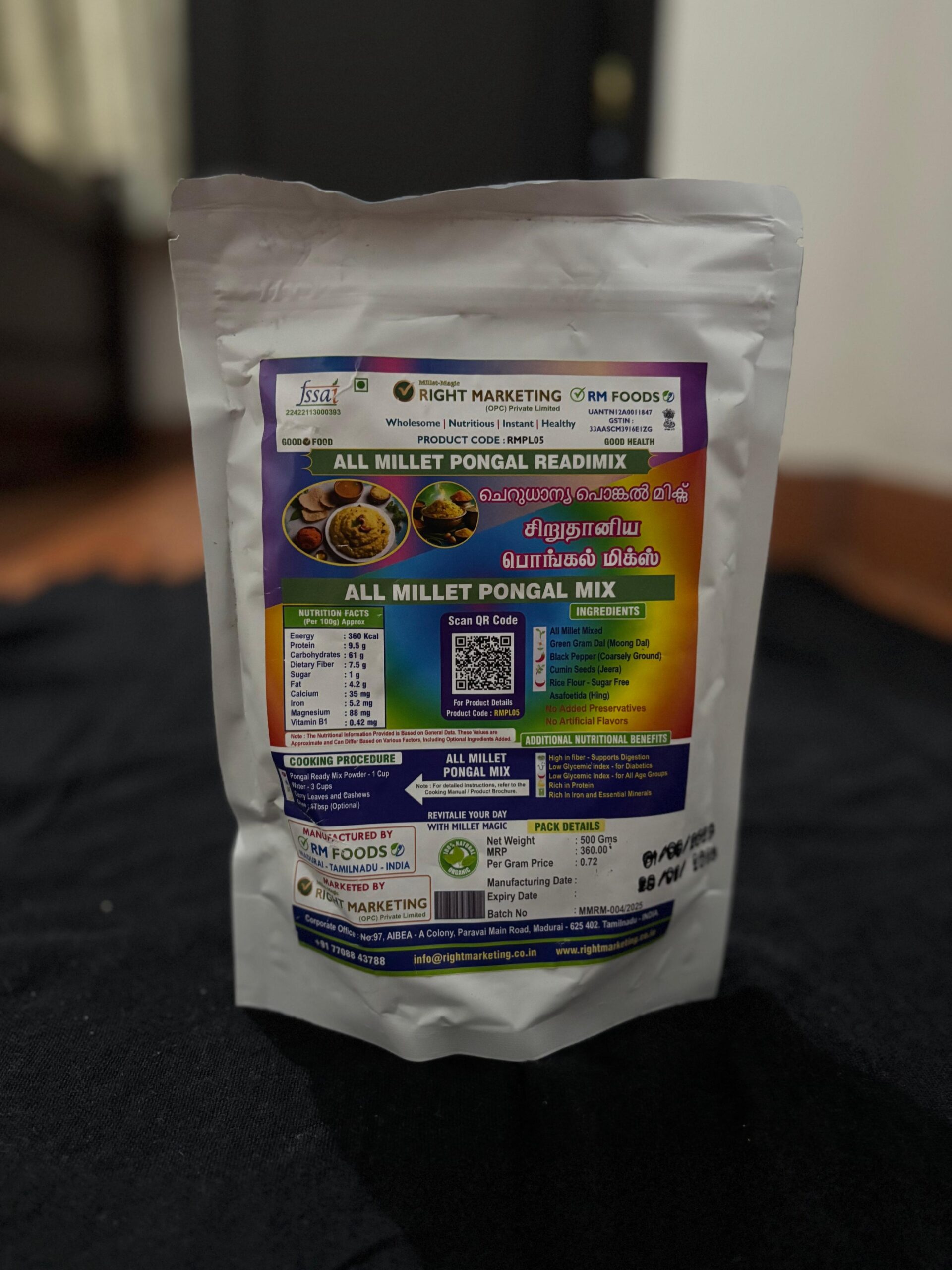 All Millet Pongal Ready Mix – 500g | Healthy Instant Pongal Mix with Millets | RM Foods